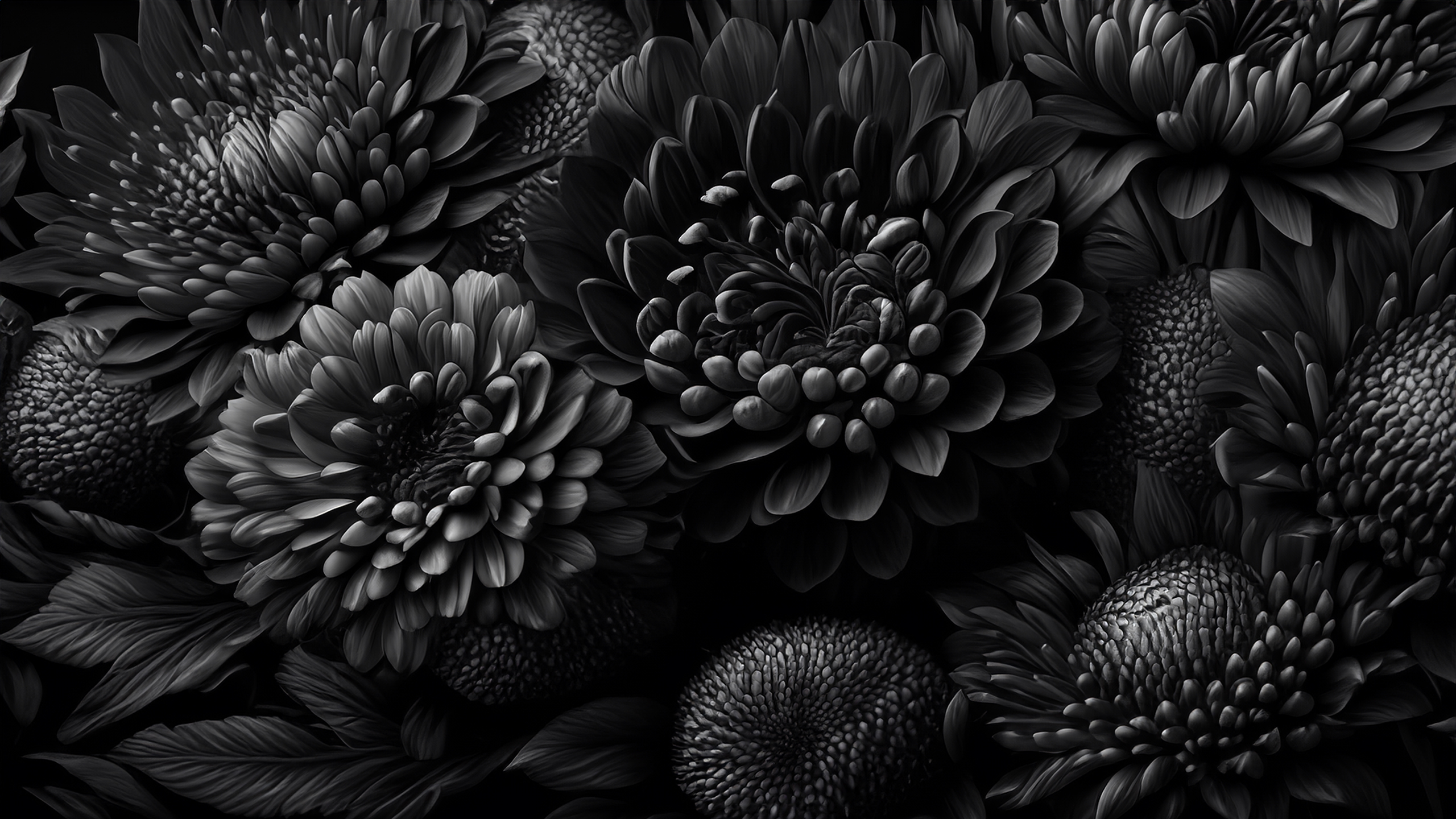 This custom black flower 2K wallpaper is perfectly sized at 2560 x 1440 pixels and is ready to use on computer screens or monitors that support high resolution 2K images.
