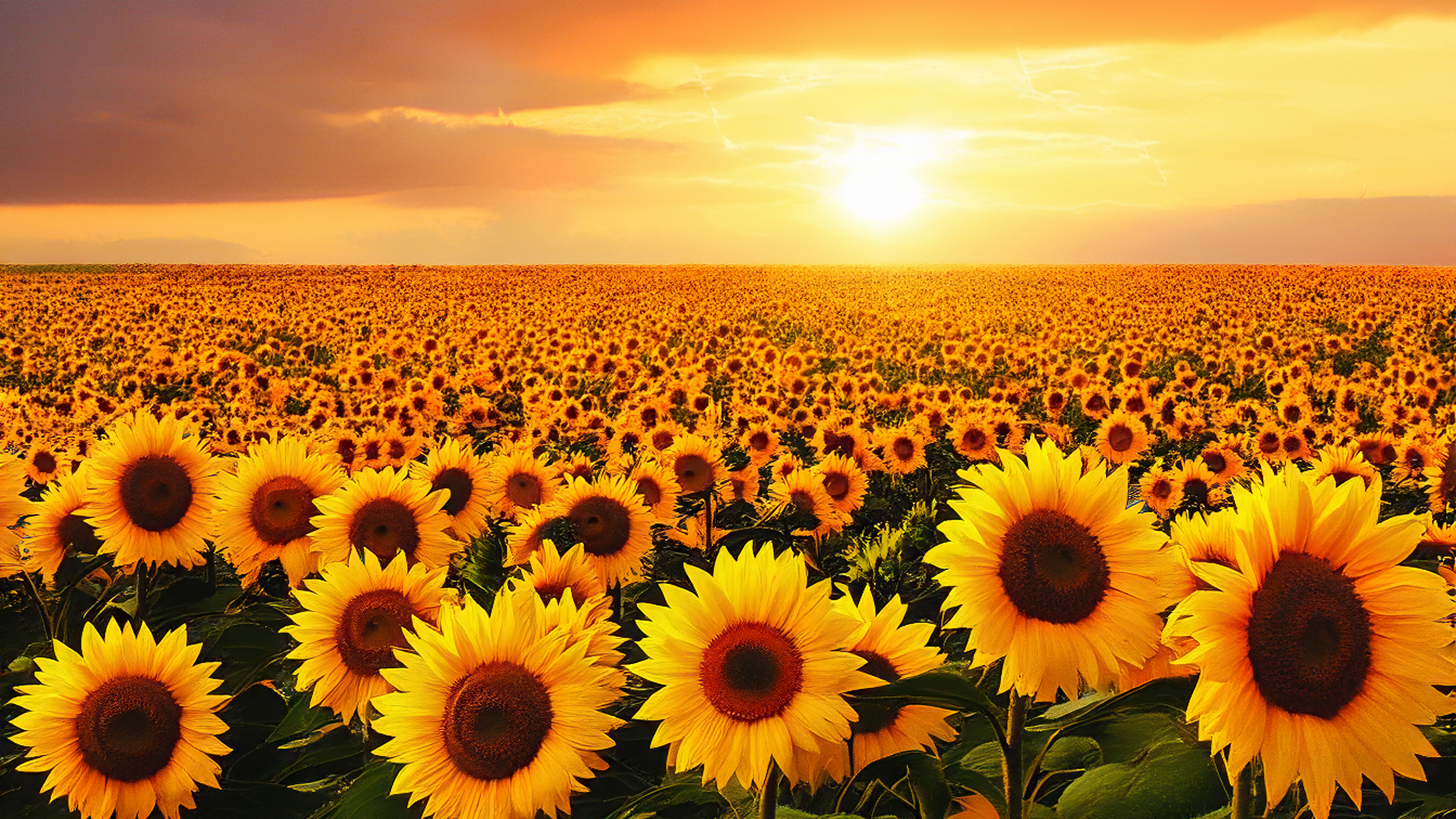 This custom sunflower 2K wallpaper is perfectly sized at 2560 x 1440 pixels and is ready to use on computer screens or monitors that support high resolution 2K images.
