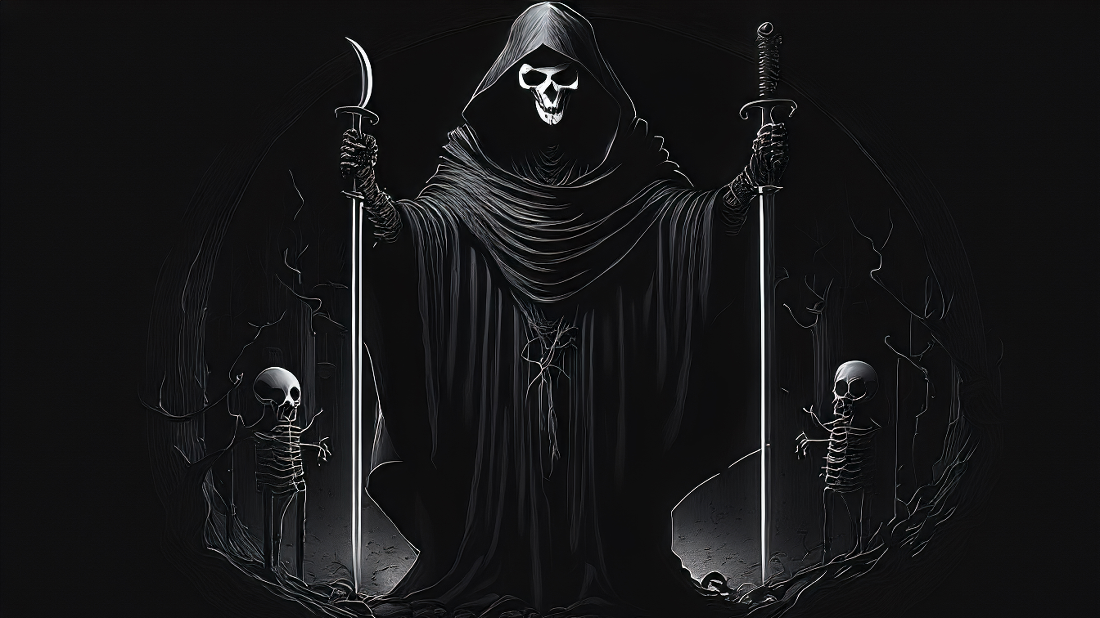This custom grim reaper wallpaper is perfectly sized at 3840 x 2160 pixels and is ready to use on computer screens or monitors that support high resolution 4K images.