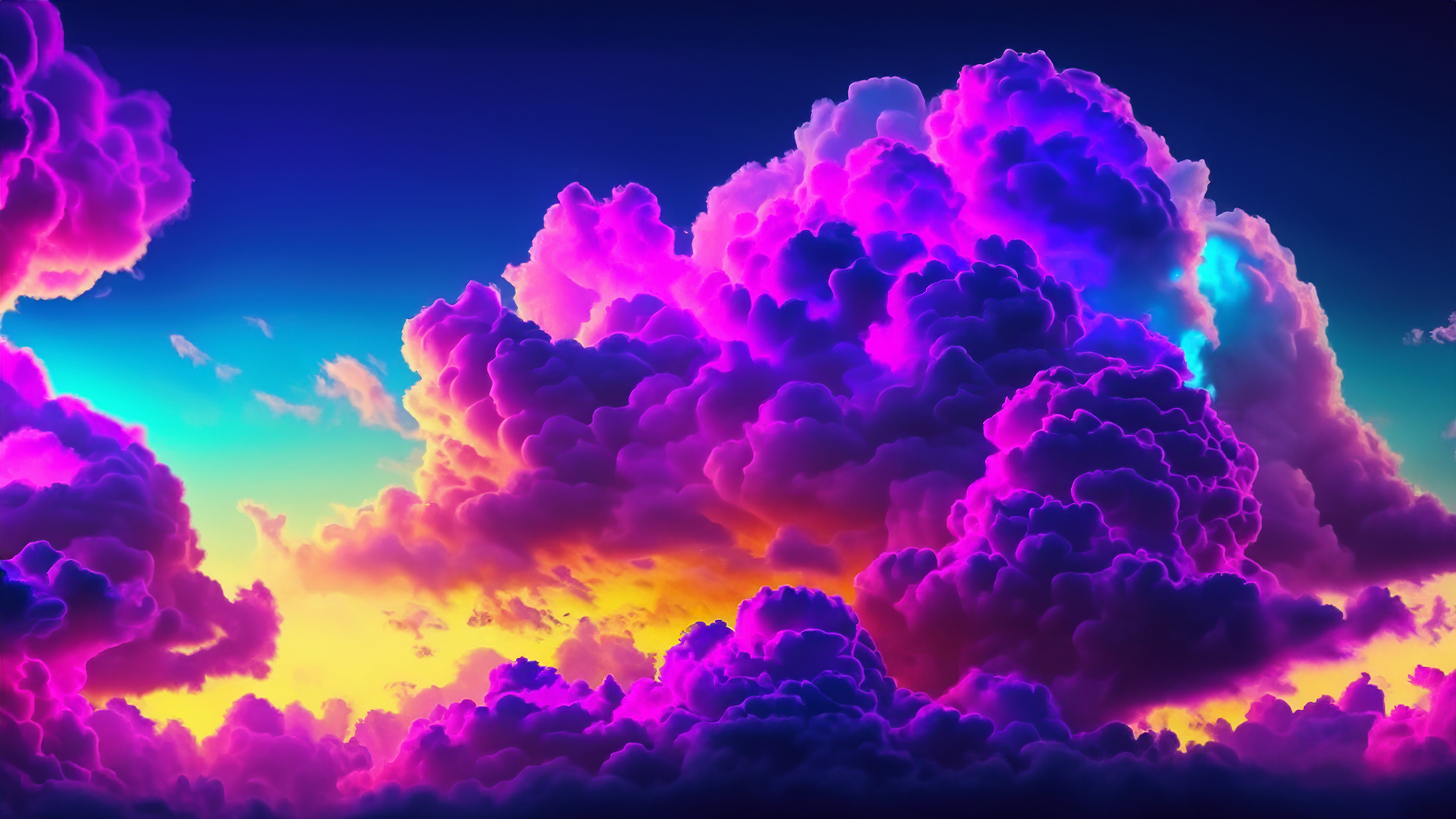 This custom neon clouds wallpaper is perfectly sized at 3840 x 2160 pixels and is ready to use on computer screens or monitors that support high resolution 4K images.